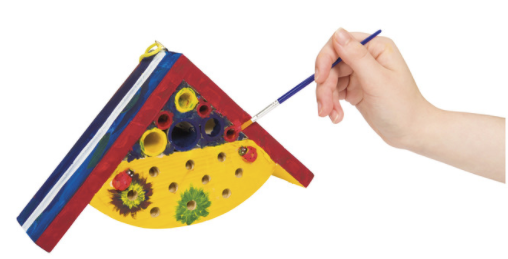 Includes 9½” x 2½” x 5½” wood bug house, eight paint pots and a paintbrush. For ages 3 and up.